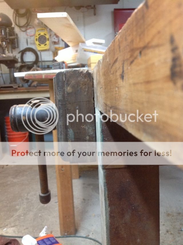 This was actually a pretty simple task. I removed the front vise and took out the lag that goes through the end cap into the top, and the wayward portion of the top was free. AND dirty.